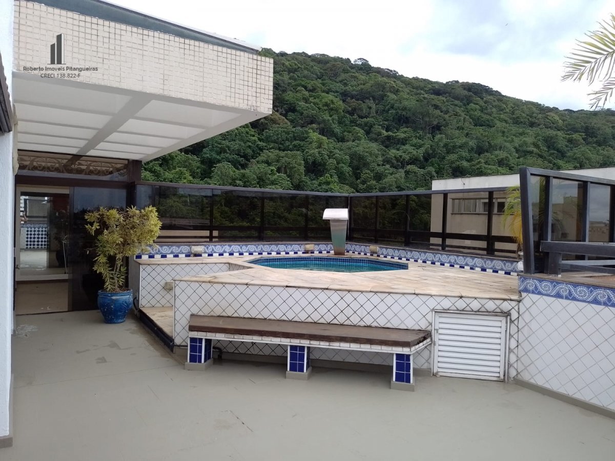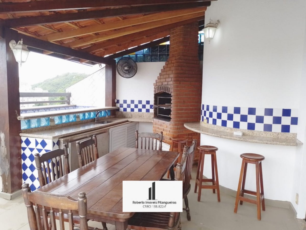 Cobertura na Praia das Pitangueiras dúplex com sala com sacada, 03 dormitórios sendo uma suite, , banheiro social, área de serviço, piso superior com piscina e churrasqueira, 02 vagas de garagem,