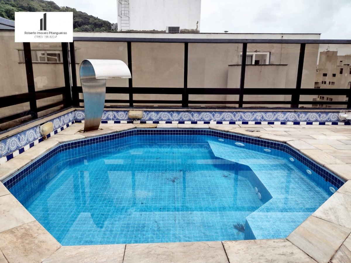 Cobertura na Praia das Pitangueiras dúplex com sala com sacada, 03 dormitórios sendo uma suite, , banheiro social, área de serviço, piso superior com piscina e churrasqueira, 02 vagas de garagem,